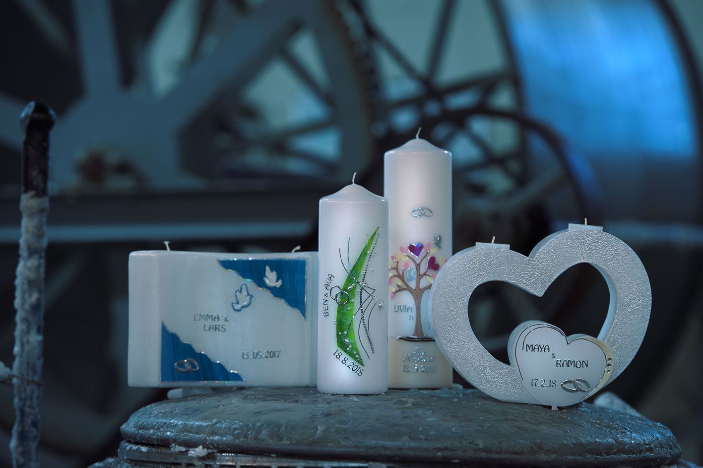 Die Hochzeitskerze wiederspiegelt das Symbol der Liebe und ist fester Bestandteil der Trauungszeremonie. In unserem Online-Shop stellen wir Ihnen unser gesamtes Hochzeitskerzen-Sortiment vor. Für individuelle Anfertigungen nehmen Sie bitte mit uns Kontakt auf.